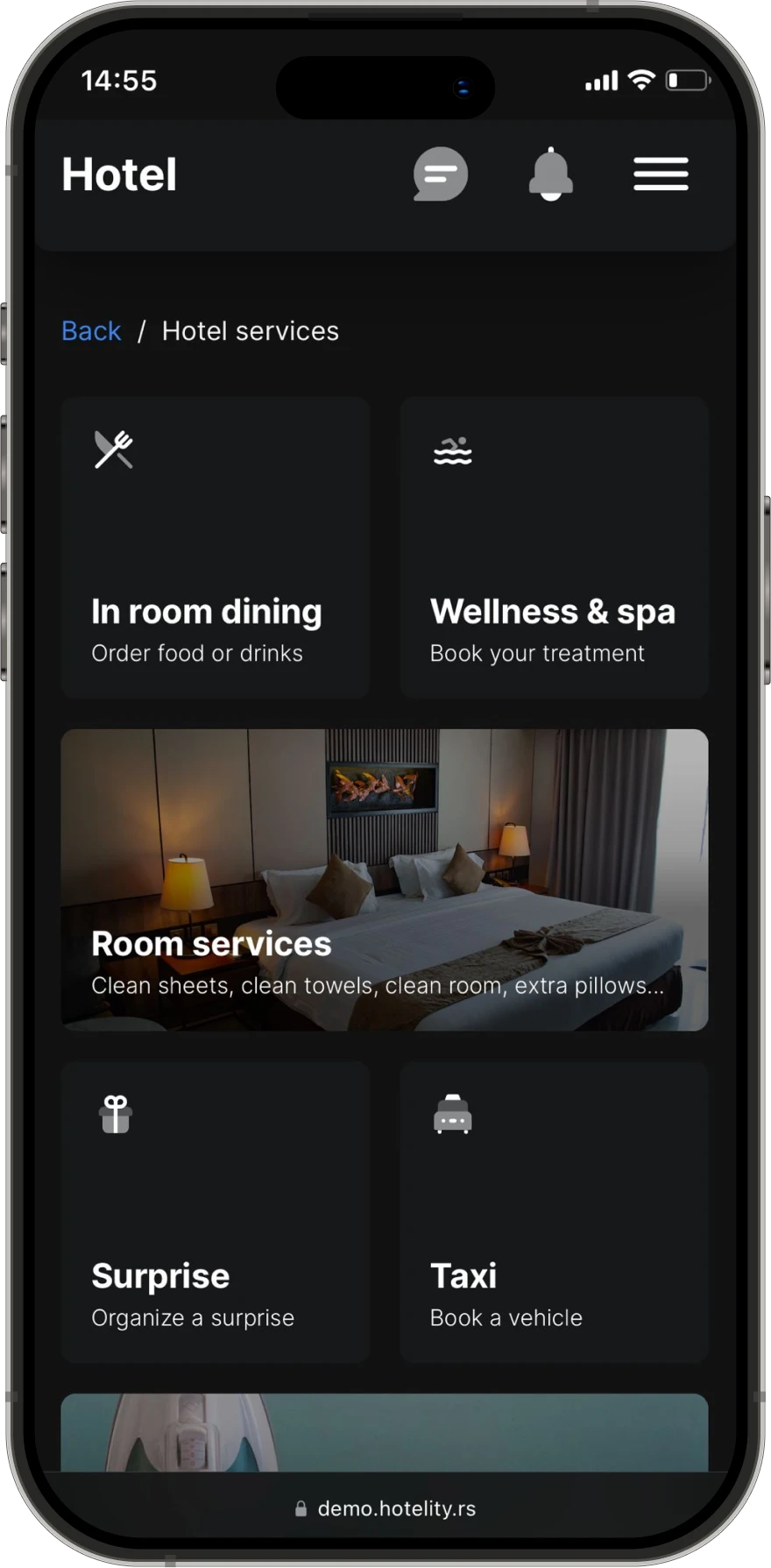 Omogućite Vašem gostu korišćenje hotelskih usluga kroz samo nekoliko klikova i pružite mu prijatniji i praktičniji boravak.